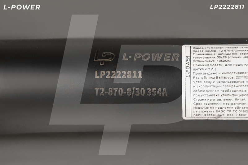 Вал телескопический карданный L-POWER для навесного оборудования МТЗ 80, 82, 1221. 2-ая серия (крут. момент 270Нм), треугольный профиль силовых труб (36,3/29,0), толщина внутренней трубы 4,0мм, наружной 3,1мм.